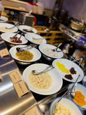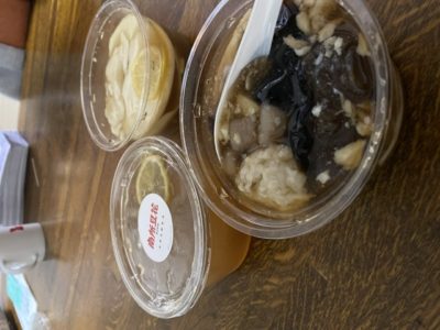 写真は今日テイクアウトした新しくできたばかりの台湾スイーツ店、南所豆花さんの豆花と西天満のラトリエギニョールエマデロンさんのオードブルです。