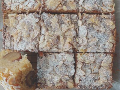 しっとりとしたケーキ生地に、発酵バターの焦がしバターのクランブル生地をたっぷり乗せて焼き上げた、