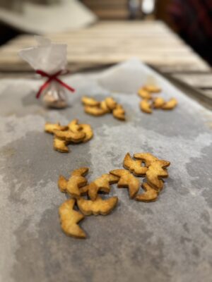 キッシュの生地にスペインバスク地方の特産であるイディアサバルチーズを削り入れて練り込み、型抜きして焼き上げた一口サイズのクラッカー。