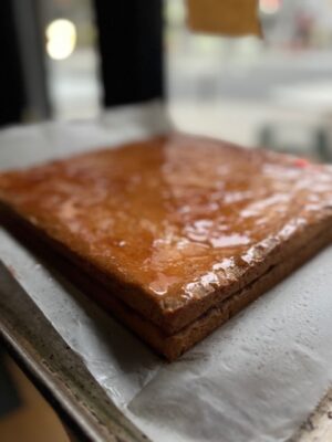 (ラム酒のシロップにしっかり漬け込んだブリオッシュのケーキ)