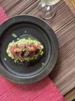 塩味と甘味の間の感じで今が旬のメロンにフェタチーズと生姜と蜂蜜を合わせたフルーツサラダもございますよ(^_^)