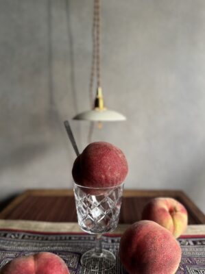その上に長野のやまさ農園さんから送っていただいたフレッシュなたまきという桃を乗せて完成。