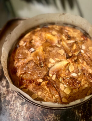アーモンドプードルを沢山練り込んだギリシャヨーグルトと発酵バターを合わせたシンプルながらもリッチな味わいのケーキにフレッシュないちじくを入れて焼き上げました。