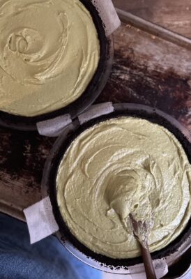 グラハムクラストのパイに、ライム果汁、テキーラ、を卵やミルクを合わせて流し込み焼き上げました。
